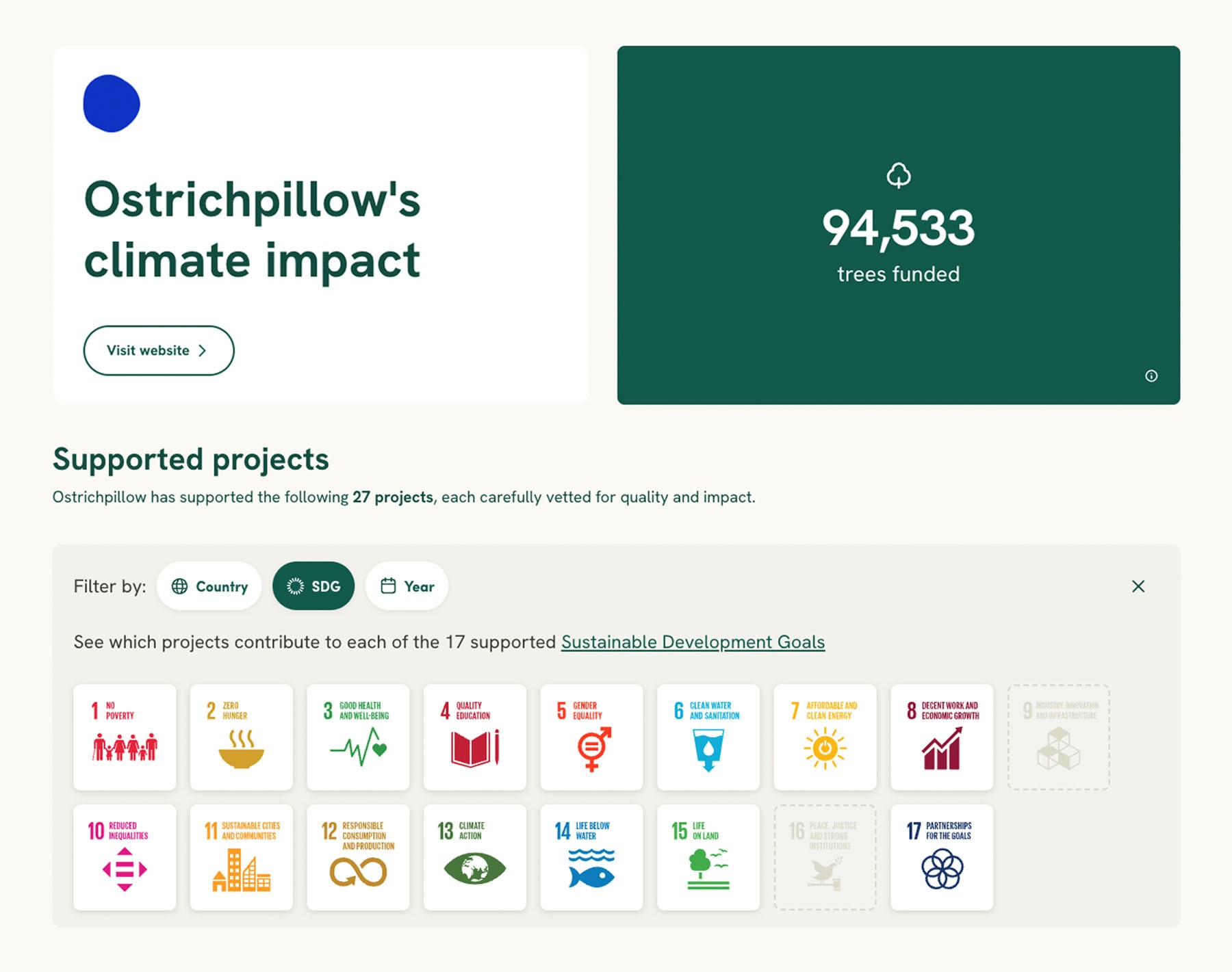 That’s where its partnership with Ecologi comes in. Ostrich Pillow has been funding tree planting since February 2021, with a simple promise to plant one tree for every order.